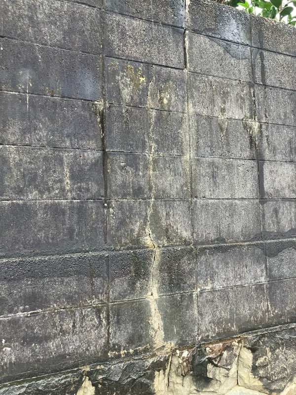 ブロックが高く積み上げられていて、ひび割れも入っていました。