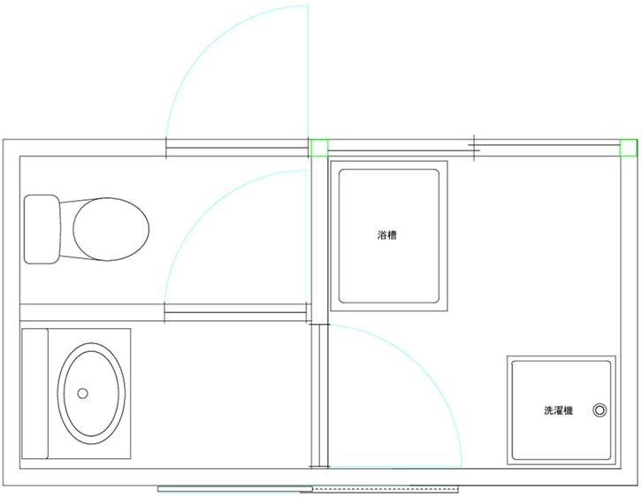 脱衣場兼洗面所の空間が少しあり、その奥にトイレがあるので、