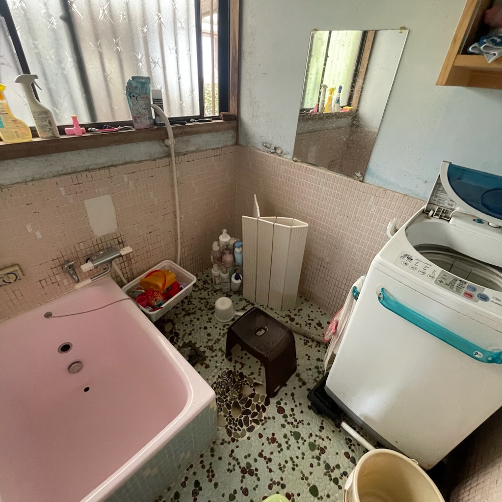 浴室も洗濯機が置いてあり空間を広く使えず、窓も大きくタイル張りの在来工法のお風呂だったので、