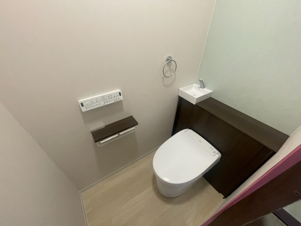 脱衣場兼洗面所の空間が少しあり、その奥にトイレがあるので、
